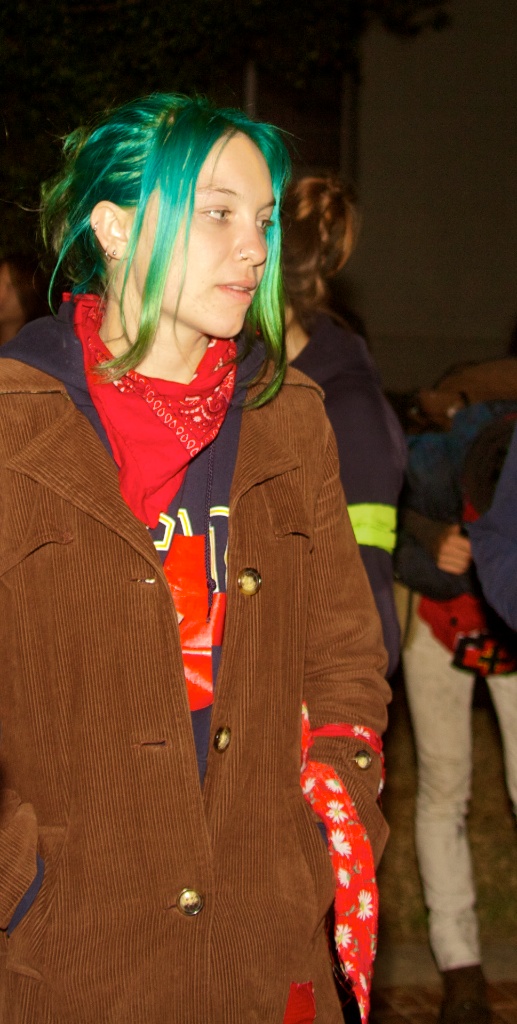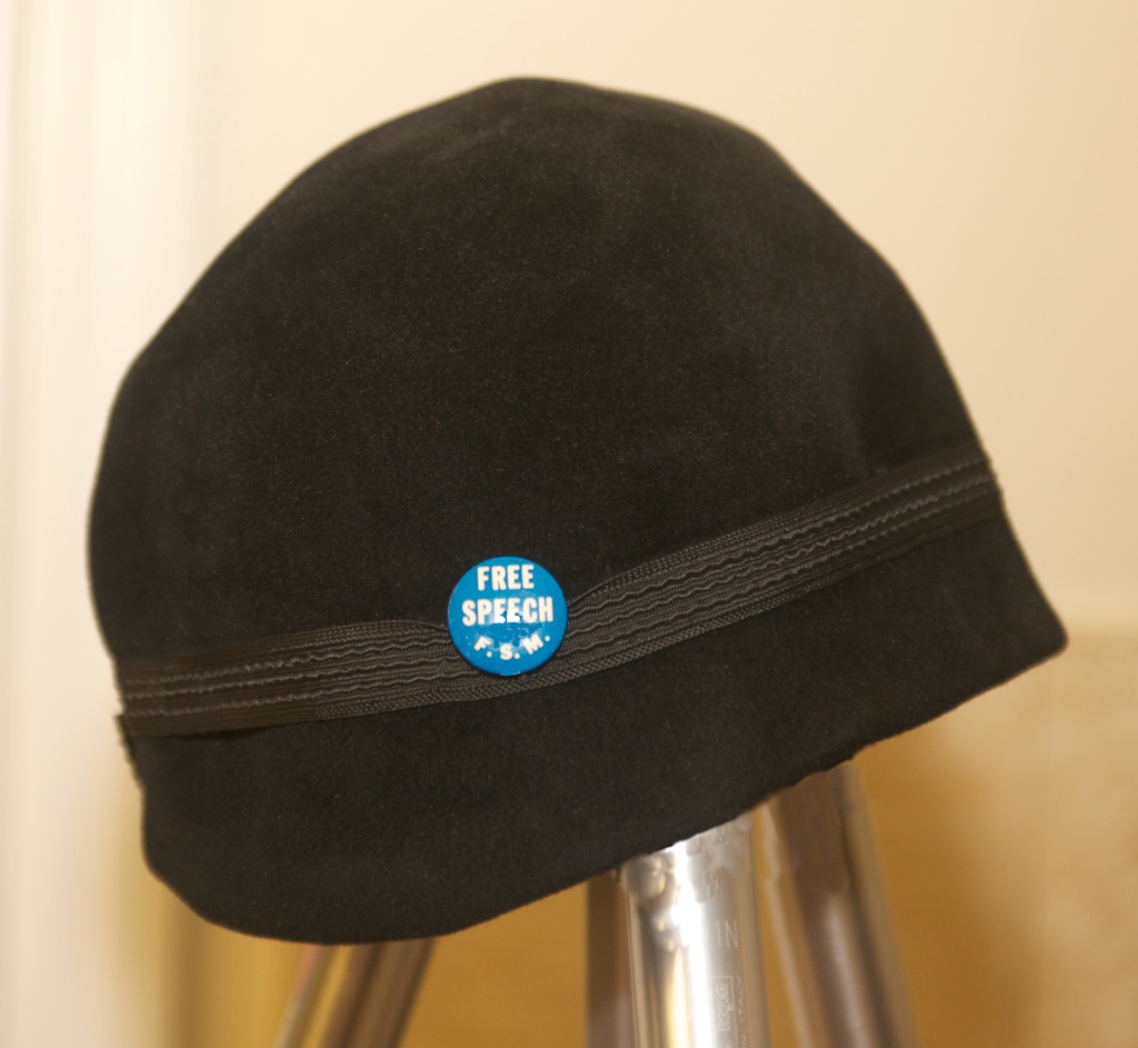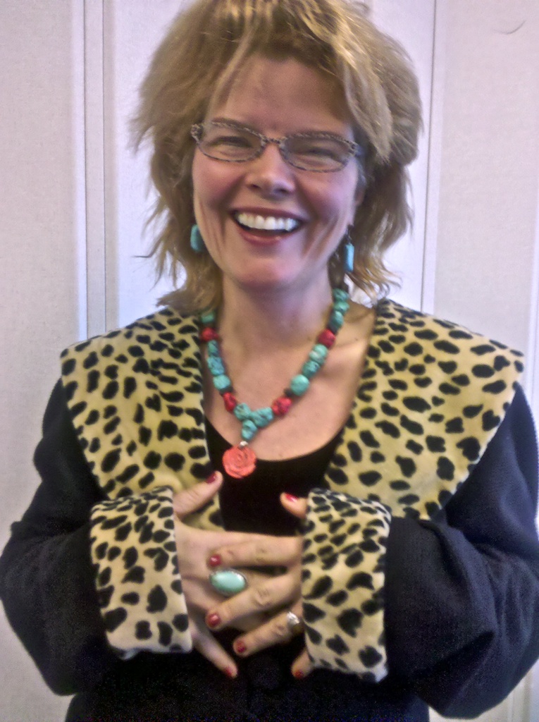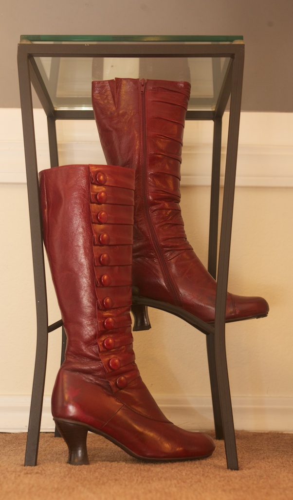 Blondo boots: The Walk Shop. Anthropology jeggings. Patagonia, zipper collar, long sleeve shirt: REI. Boho fingerless, cashmere gloves: Molly b. Black vest: Breast Cancer store. Thrifted hat and the most significant adornment, my Free Speech blue button from 1964.