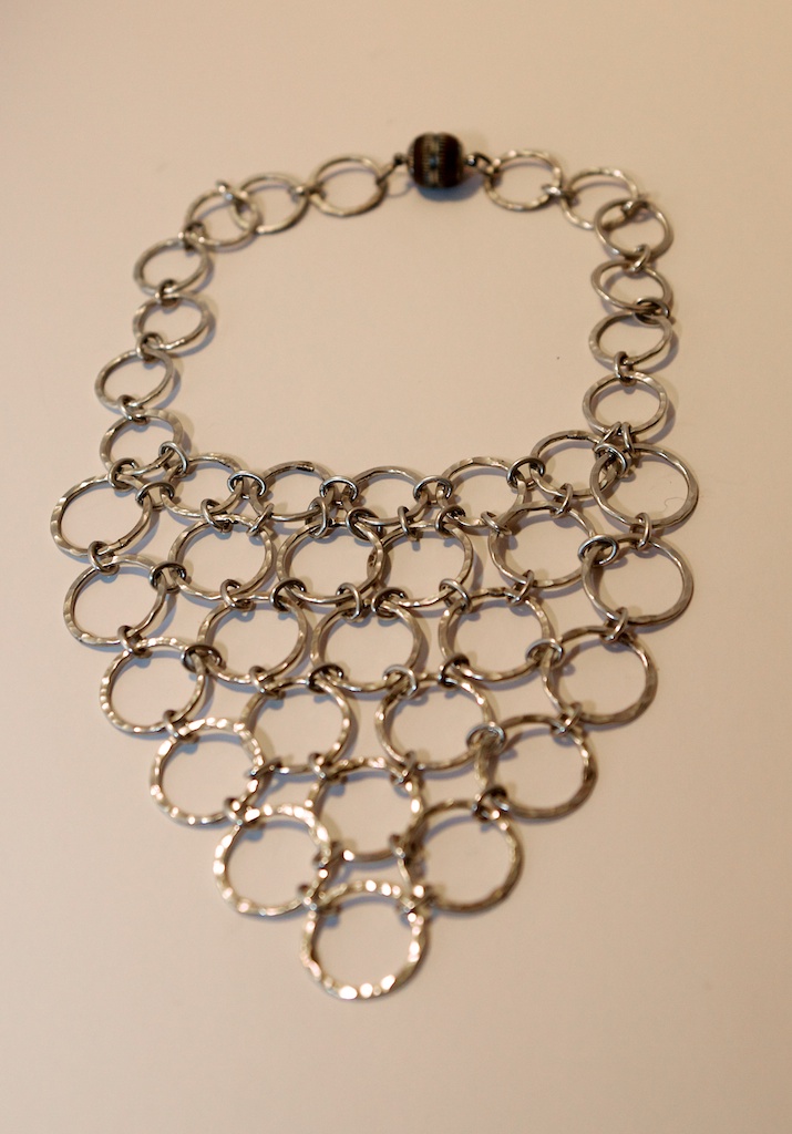 The new wide brimmed, burgundy hat (Target) inspired this outfit. Very comfortable, burgundy Miz Mooz boots: Rabat. My first choice for cold days, cozy D'all black jersey jeggings: Margaret O'Leary. A*Z*I*Z lace, burgundy, half sleeve, pullover top & gauzy, long sleeve, black top: thrifted from Sola Lucy. Faux fur collar and leather vest: Tiff from Target girls. Since I'm now only 5 feet tall and slim I often buy in the girls department where cloths fit me better and prices are about 30% lower. Silver circle-drape necklace: El Cerrito Jewelers.