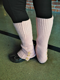 BCBG pink sweater: gift from cousins Kathy & Danielle. Black, rayon, long sleeve, mock turtle neck is the oldest piece of clothing I still have. I bought it in 1963 at a department store in downtown Oakland. Black bowler hat: Target. Boho cashmere, fingerless gloves: Molly b. (www.mollybstores.com/). D'all black jersey jeggings: Margaret O'Leary (www.margaretoleary.com). Leg warmers: purchased last year but don't remember where. Seibel clogs: db Discount Shoes. Pink watch: Breast Cancer site. (http://www.thebreastcancersite.com/clickToGive/home.faces?siteId=2)