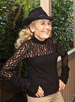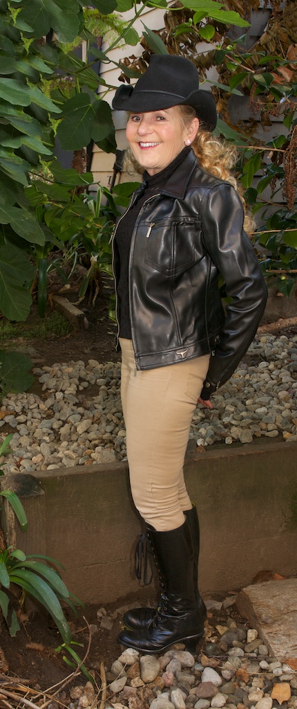 Black faux-leather, sergio valente jacket: Good Will. Black laces Miz Mooz boots: Rabat on Fourth. Black Sigrid Olsen, lace top: thrifted from Sola Lucy. Black lacy Zazou bamboo fingerless gloves: Bryn Walker. Tan jeggings & Black cowgirl hat: TargetAt 72 I am blessed to feel like a teenager and occasionally like an 8 yr. old. My first priority is self-care: of physical body, spiritual journey, emotional and financial well being. My next priorities are family, friends and community. I eat and drink healthy, exercise/play often, love my family, dog and many friends. I help when/wherever I can, share my burdens and abundance; am dedicated to spiritual practices, loving abundantly and count my many blessings throughout the day.