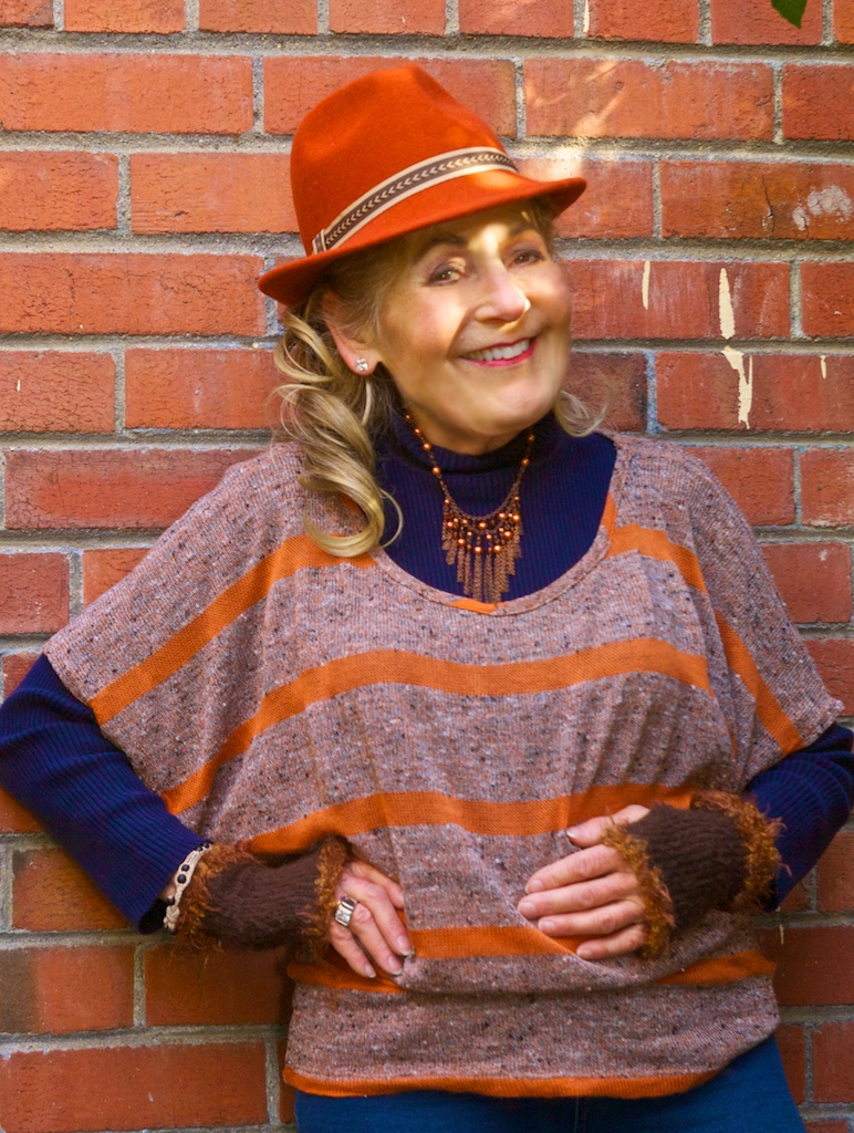 Tonight, while watching the Oscars I reflected on those days and my style. I moved to Berkeley in 1960 to go to the University of California, CAL Berkeley. Berkeley is true to it's stereotype, a place for serious intellectual endeavors; and does not embrace glamour. I arrived with bleached blond bouffant hair & immediately died it brown and wore it straight down to match the norm. But I continued to love glamour. I embraced the "back to nature girl" look in the 60s while a student & women's liberation stance, working in academia in the early 70s. But as soon as I began working in the real world I embraced my love for glamour; I learned that being pretty & stylish was the perfect complement to being smart, serous, competent & successful. I dressed up. People often asked me where I was visiting from!! You can take the girl out of Hollywood but you cannot take Hollywood out of the girl. So here I am wearing my red furry tribute to Hollywood glamour, handmade for me by my dear & talented friend, Ethel.