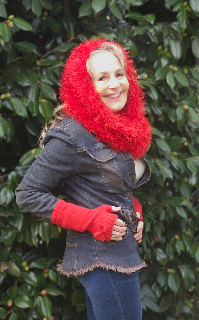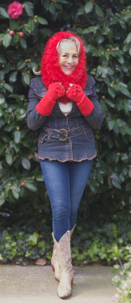 Tonight, while watching the Oscars I reflected on those days and my style. I moved to Berkeley in 1960 to go to the University of California, CAL Berkeley. Berkeley is true to it's stereotype, a place for serious intellectual endeavors; and does not embrace glamour. I arrived with bleached blond bouffant hair & immediately died it brown and wore it straight down to match the norm. But I continued to love glamour. I embraced the "back to nature girl" look in the 60s while a student & women's liberation stance, working in academia in the early 70s. But as soon as I began working in the real world I embraced my love for glamour; I learned that being pretty & stylish was the perfect complement to being smart, serous, competent & successful. I dressed up. People often asked me where I was visiting from!! You can take the girl out of Hollywood but you cannot take Hollywood out of the girl. So here I am wearing my red furry tribute to Hollywood glamour, handmade for me by my dear & talented friend, Ethel.