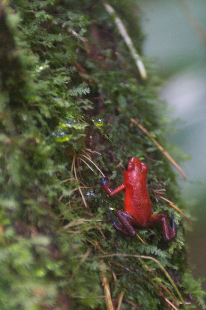 Seeing the one inch, red, poison dart frog, in it's natural environment, was one of the goals of my trip to the rainforest. I was not disappointed as they were plentiful and colorful. Because of the blue legs they are said to be wearing blue jeans.