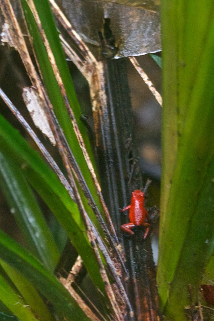 Seeing the one inch, red, poison dart frog, in it's natural environment, was one of the goals of my trip to the rainforest. I was not disappointed as they were plentiful and colorful. Because of the blue legs they are said to be wearing blue jeans.